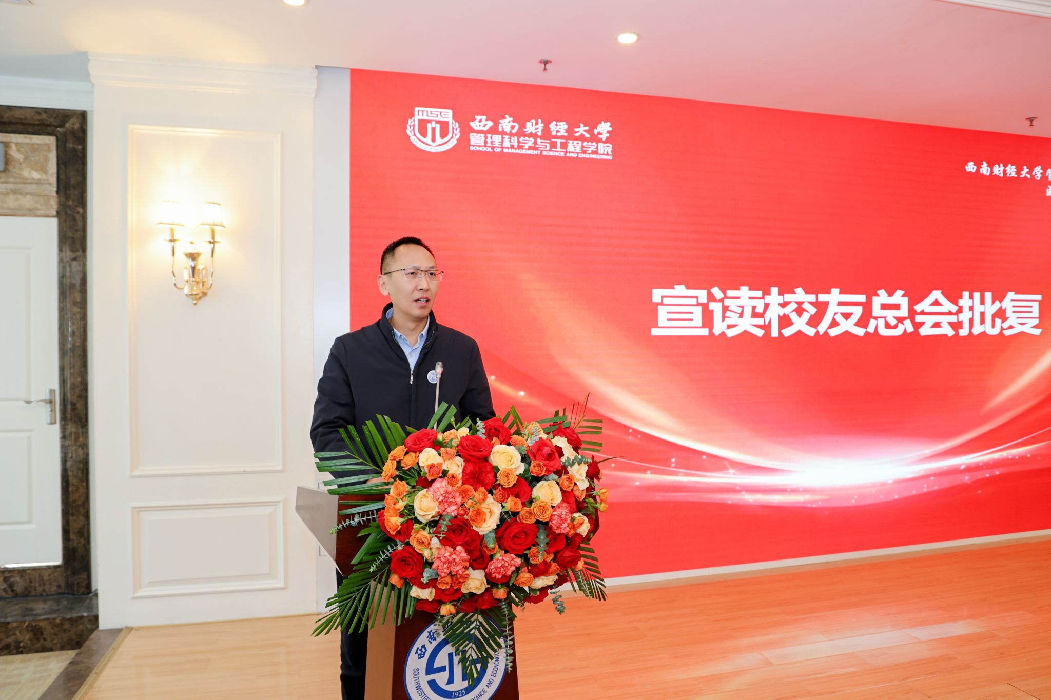 校友总会办公室主任张元宣读校友总会批复,向管科星际娱乐场